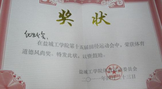 我院在第十五届田径运动会中荣获体育道德风尚奖