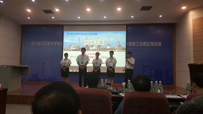 来自东南大学、南京理工大学、南京工业大学、常州大学等18所高校的32支队伍参加了现场角逐。经过三天的激烈比拼,我院中山化工1队(队员:姚凯、徐昌东、陈鑫、刘义霖、周亚芹)和中山化工2队两支队伍(队员:温宇航、宁路、孟珂卉、梁笑荣、钱莹莹)双双获得一等奖的好成绩。中山化工2队将于8月1日-6日参加宁波工程学院承办的2018华东大学生化工设计竞赛暨第十二届全国大学生化工设计竞赛华东选拔赛。