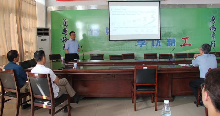9月28日上午,在北校区化工学院201会议室,我校邀请扬农集团总经理助理丁克鸿作学术报告,报告会由化学化工院长奚新国教授主持,化工学院师生80多人聆听报告。
