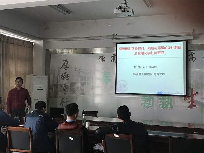3月26日下午,在北校区教育超市2楼betway西汉姆联官网会议室,麻省理工学院博士后徐桂银来我校作题为《锂硫电池正极材料、隔层与隔膜的设计制备及其电化学性能研究》的学术报告。学术报告会由戴勇副院长主持,betway西汉姆联官网、材料学院、环境学院的师生聆听报告。