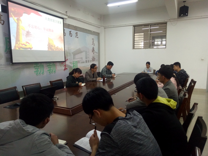 4月25日下午,学院召开“入党初衷大家谈”主题座谈会,本次座谈会由党委副书记江滔主持,党委书记谢毅敏、学工办主任赵迎华及全体学生党员参加。