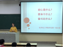 为扎实推进“不忘初心、牢记使命”主题教育,领悟习近平总书记重要讲话精神,引导广大党员在不忘初心中汲取力量,在牢记使命中体现担当作为。化工学院学生第一党支部于10月22日在知行楼110围绕“守初心、担使命、找差距、抓落实”总要求,结合“初心是什么、使命干什么、奋斗比什么”讨论,开展了党员“四重四亮”主题党日活动。化工学院一支部书记李慧出席并主持本次活动,支部全体党员参加。