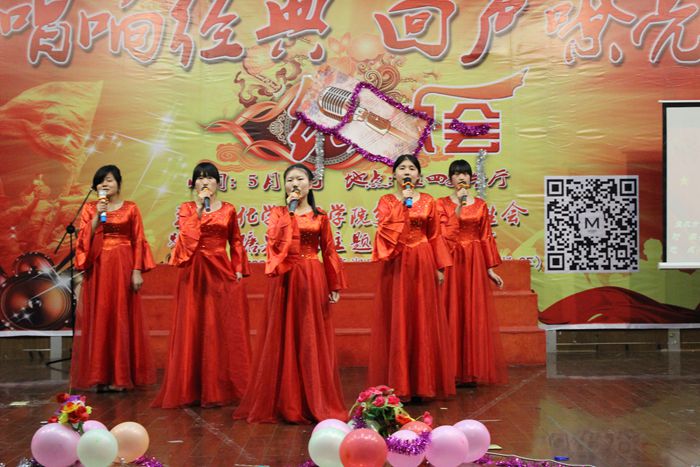 本次活动以班级为单位传唱经典,90后大学生用他们的方式演绎了一首首经典,大学生伴着优美的旋律,用甜美歌声歌颂祖国锦绣河山。“爱我中华”、“红旗飘飘”、“歌唱祖国”等耳熟能详的歌曲回荡在活动现场,同学们感情饱满的传唱赢得了阵阵掌声。本次传唱共有16个曲目,经过评委们紧张的评定,D化工141获一等奖,化工132等3个班级获二等奖,化工131等6个班级获三等奖。