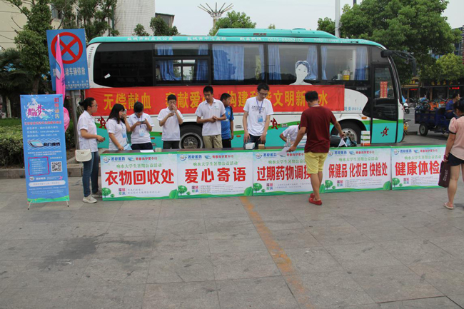 7月16至18日,化生学院暑期社会实践服务团队和响水药监志愿服务大队在响水举办“青春微梦夏令行第二季”暑期社会实践活动。活动旨在引导返乡大学生参与当地社会文明事业,体现青春公益色彩。活动招募了来自betway西汉姆联官网、盐城师范学院、江苏师范大学、南京理工大学等多所高校的50余名响水籍大学生志愿者参加。7月17日,志愿者们走进了食品药品安全行第一站——苏好医药进行参观,并与工作人员学习简易的药品检验,在实践中体会食品保健的重要性。7月18日,志愿者们前往响水黄圩为40多个老人送去保健品,给这些孤寡老人送去关爱。此外,在当地城管局的支持下,志愿者每晚都在滨江十字路口进行“创业实践行”活动,为路人提供免费的血压测量,并举行自制钱包等义卖活动,获得的爱心资金将全数捐给当地贫困儿童,活动得到了当地居民的广泛支持。