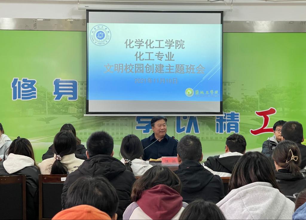 11月10日,betway西汉姆联官网在201会议室召开文明校园创建主题班会。院党委副书记江滔主持,19级化工专业全体同学参加。