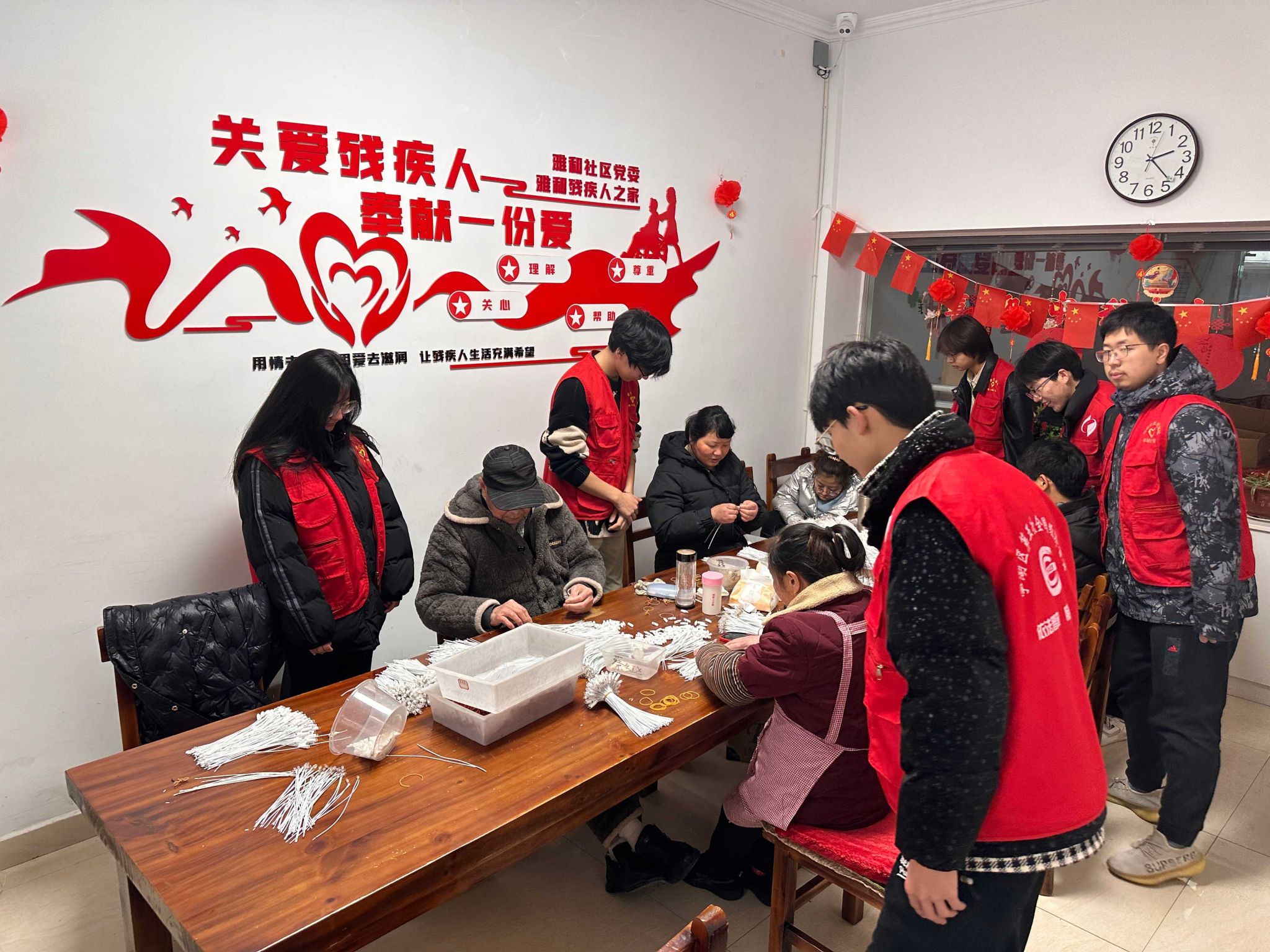 “雅和残疾人之家”里,志愿者们与残疾人亲切交流,参与他们一起做手工,了解他们的困难和需求,鼓励他们树立信心,积极勇敢地面对生活,整个房间充满温暖和关爱。此外,志愿者们不辞辛劳地对“雅和残疾人之家”周边环境卫生进行了集中清理,为“雅和残疾人之家”建设贡献了自己的一份力量。