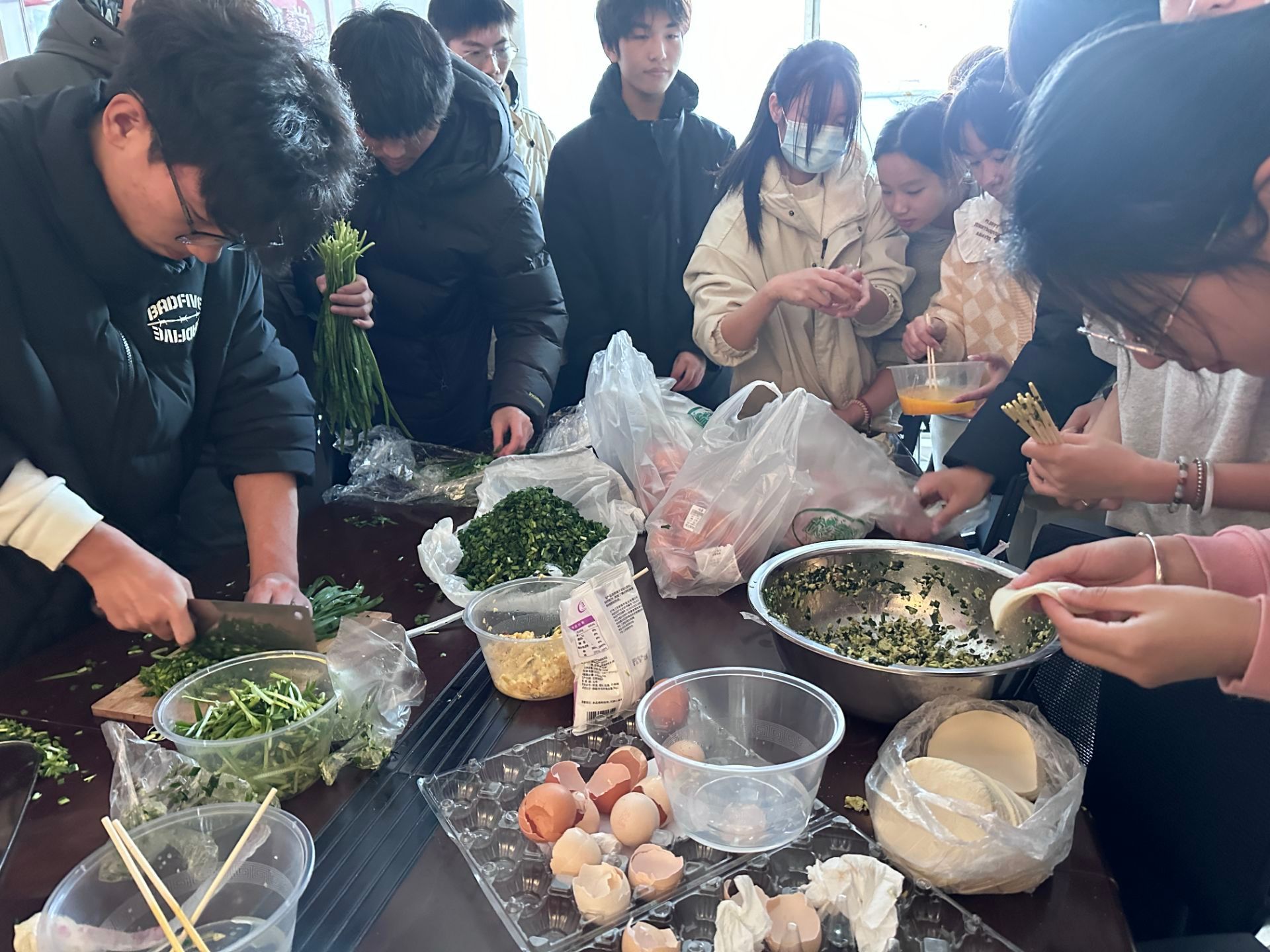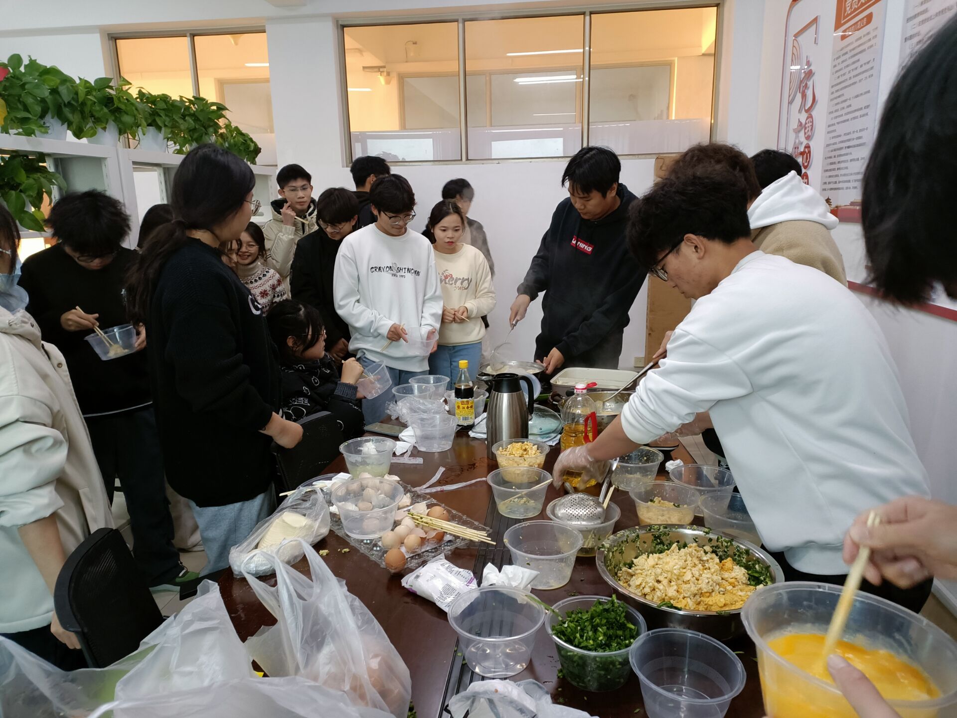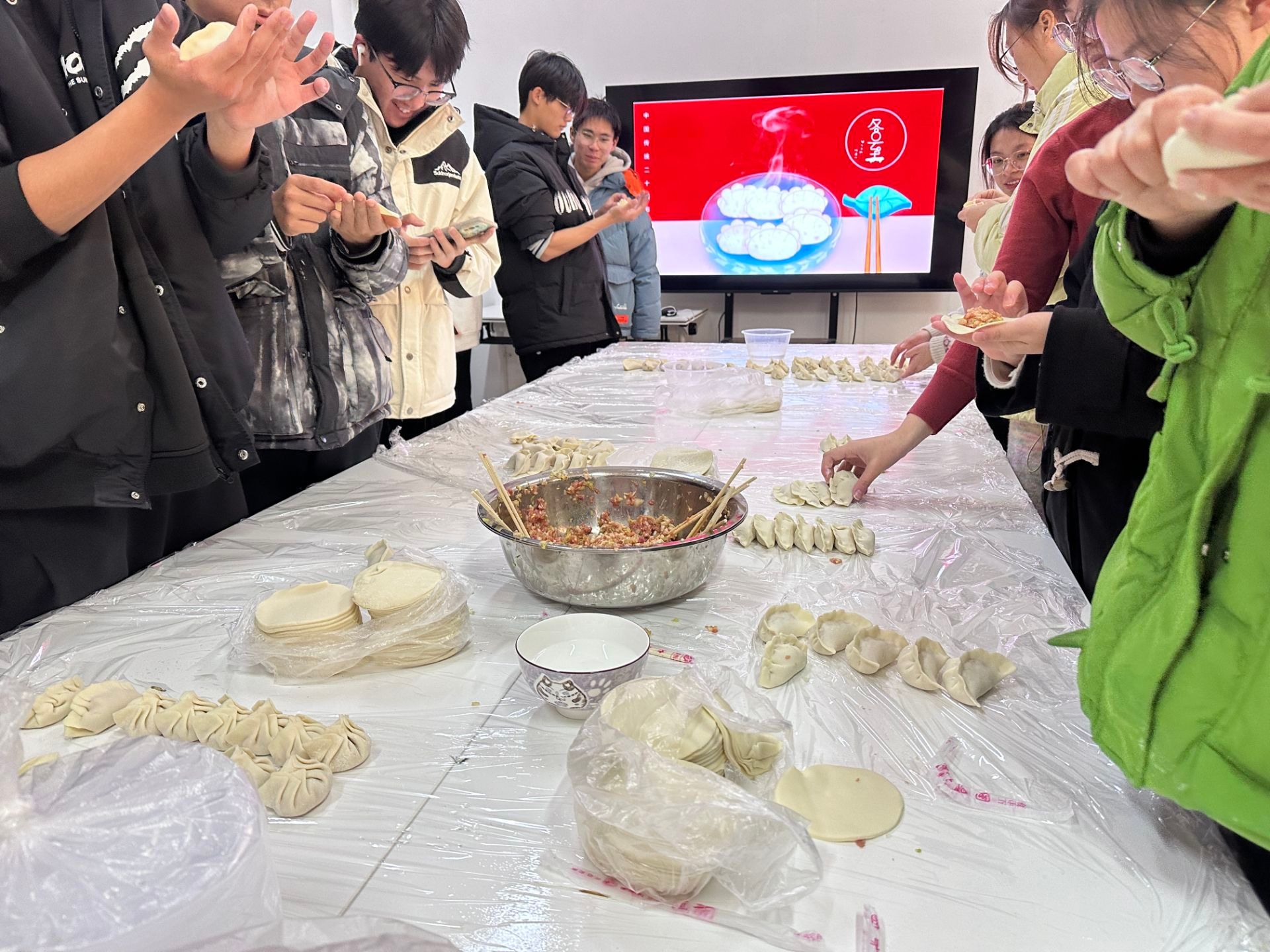 活动开始,老师、同学们围在桌子旁,制作鲜嫩、丰富的馅料,赶制新鲜的饺子皮,互相配合,分工合作,忙得不亦乐乎。参加活动的同学们兴致勃勃地聚在一起包饺子。有些同学娴熟地操纵着饺子皮和馅料,饺子很快就摆放整齐;一些同学则发挥创意,塑造出各种可爱造型。温馨是一整场活动的基调,伴随着阵阵欢声笑语,同学门吃着自己包好的饺子,每个人的脸上都洋溢着节日的喜庆。
