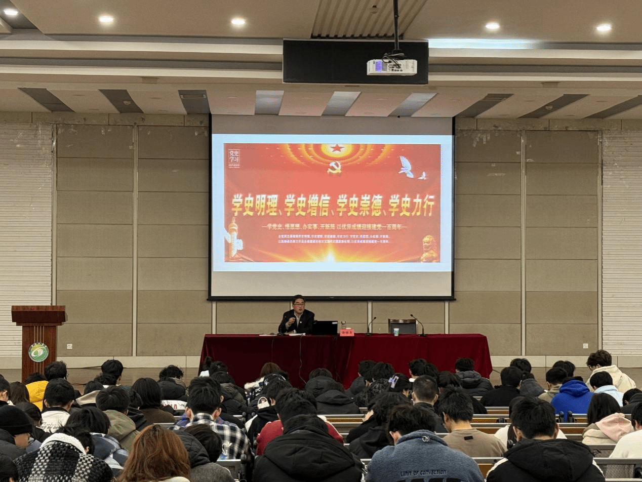 12月6日下午,betway西汉姆联官网邀请校关工委副主任徐报喜在北校区化工楼报告厅为全体大一新生开展“从百年党史中激发信仰汲取力量”专题讲座。学院党委副书记江滔主持,新生辅导员及全体2023级新生参加。