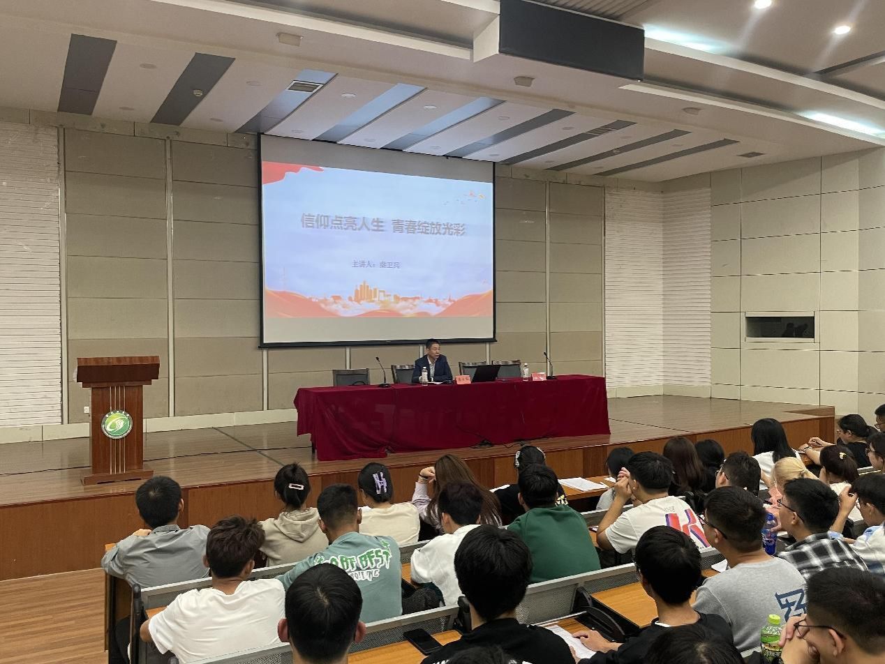 10月10日晚,在化工楼报告厅,学院邀请校党委组织部副部长秦卫兵为全体大一新生开展“信仰点亮人生,青春绽放光彩”讲座。学院党委副书记江滔主持。
