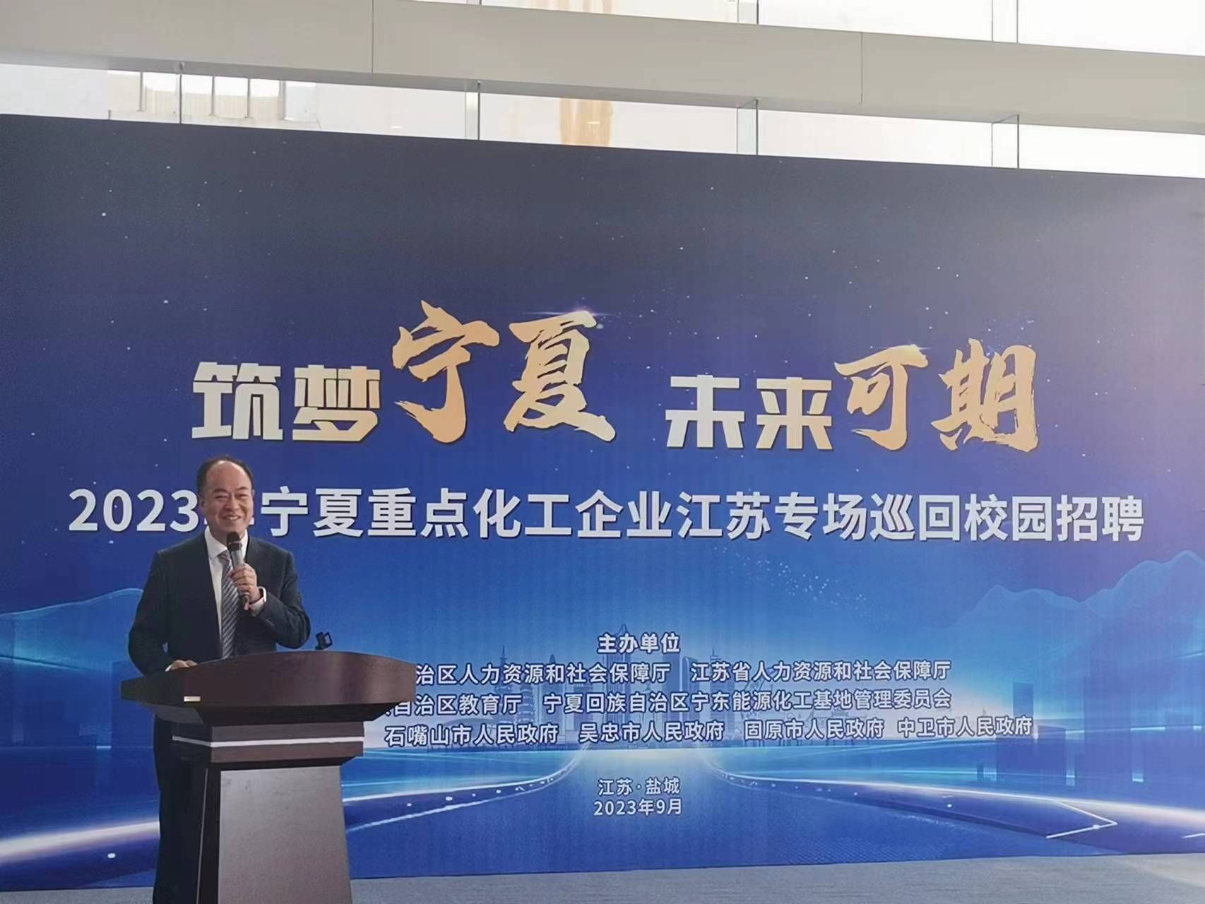 为贯彻党中央、国务院关于促进高校毕业生等青年就业工作部署,深入实施就业优先战略,深化拓展苏宁两省就业协作,吸引更多高校毕业生到宁夏就业创业。宁夏回族自治区人力资源和社会保障厅、教育厅、宁东能源化工基地管理委员会与江苏省人力资源和社会保障厅、盐城市人力资源和社会保障局和我校成功对接,于9月26日上午,在学校北校区化工楼成功举办“筑梦宁夏,未来可期”宁夏重点化工企业江苏专场巡回校园招聘活动。