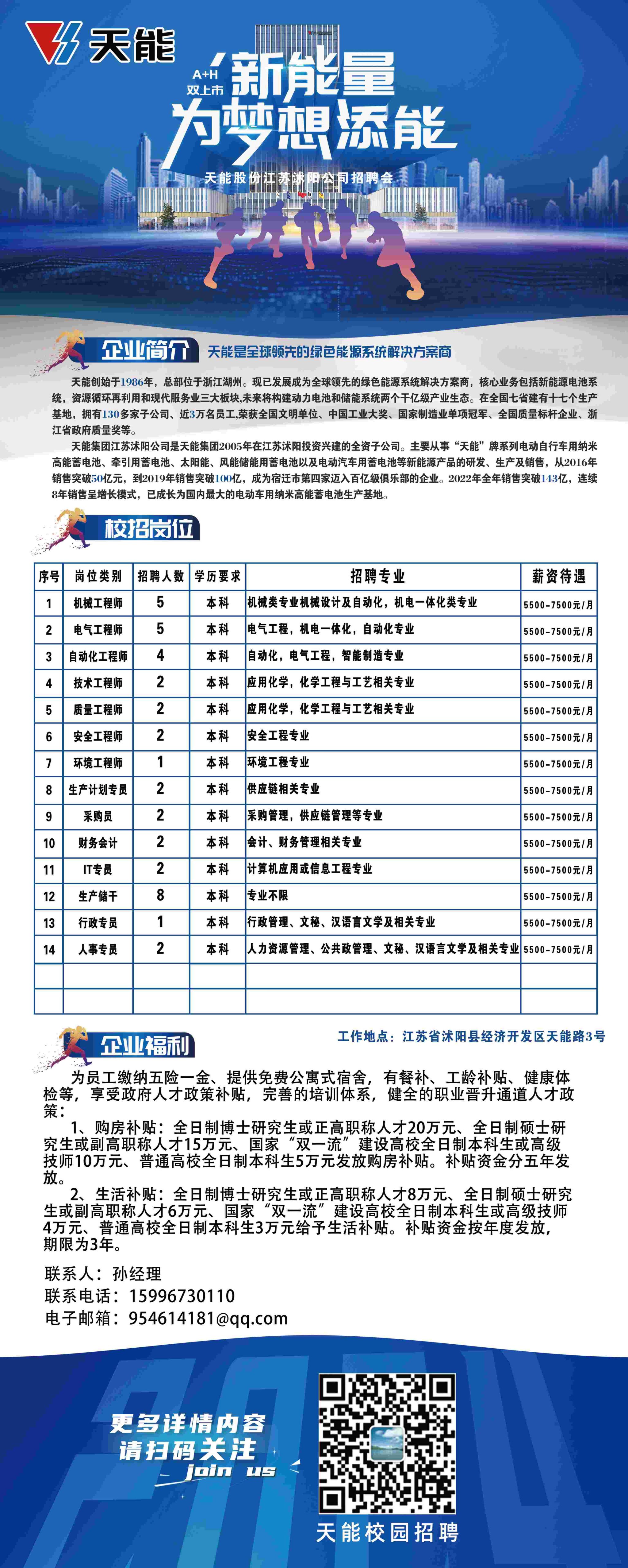 天能股份江苏沭阳公司招聘简章