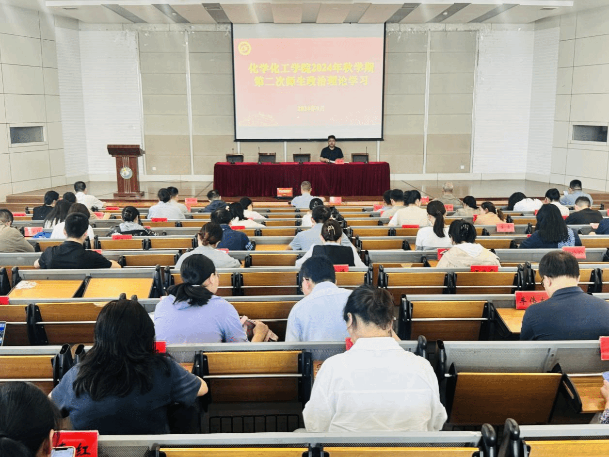 9月25日下午,betway西汉姆联官网在北校区化工楼报告厅组织开展2024年秋学期第二次师生政治理论学习。学院党委书记庞辉主持,学院全体教职工、学生党员和学生干部代表参加学习。