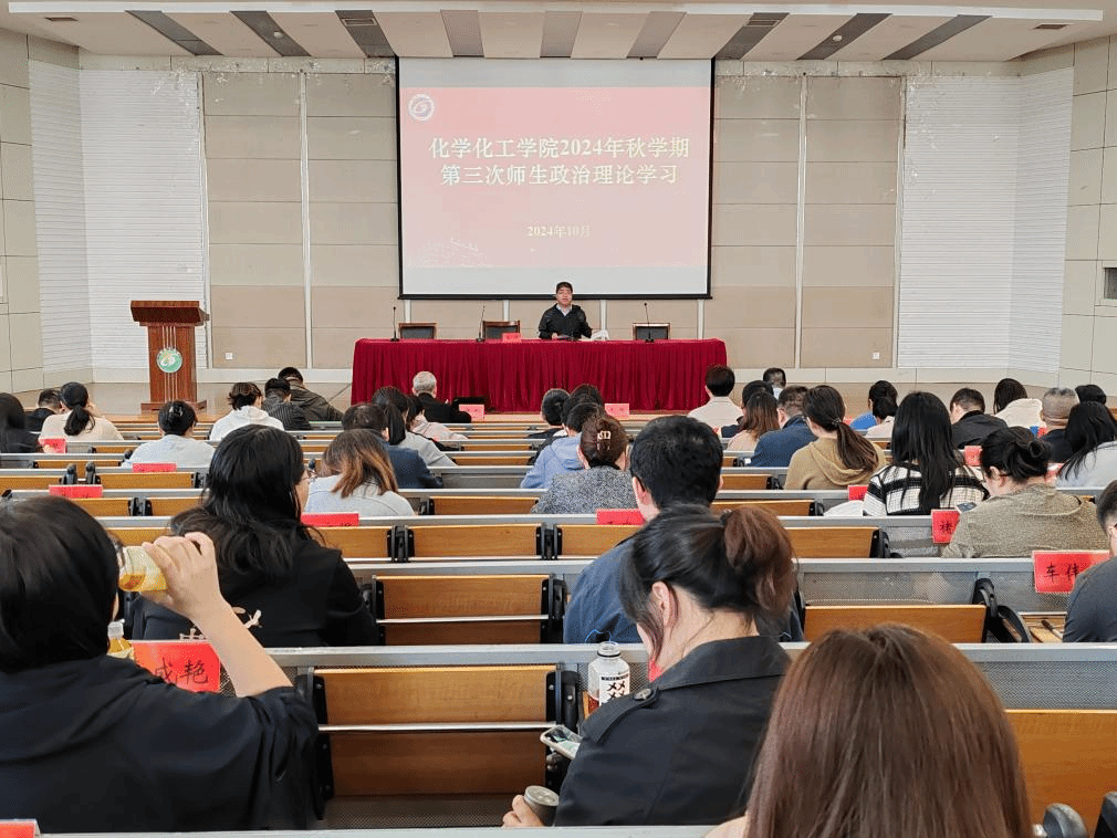 10月9日下午,betway西汉姆联官网在北校区化工楼报告厅组织开展2024年秋学期第三次师生政治理论学习。学院党委书记庞辉主持,学院全体教职工、学生党员和学生干部代表参加学习。