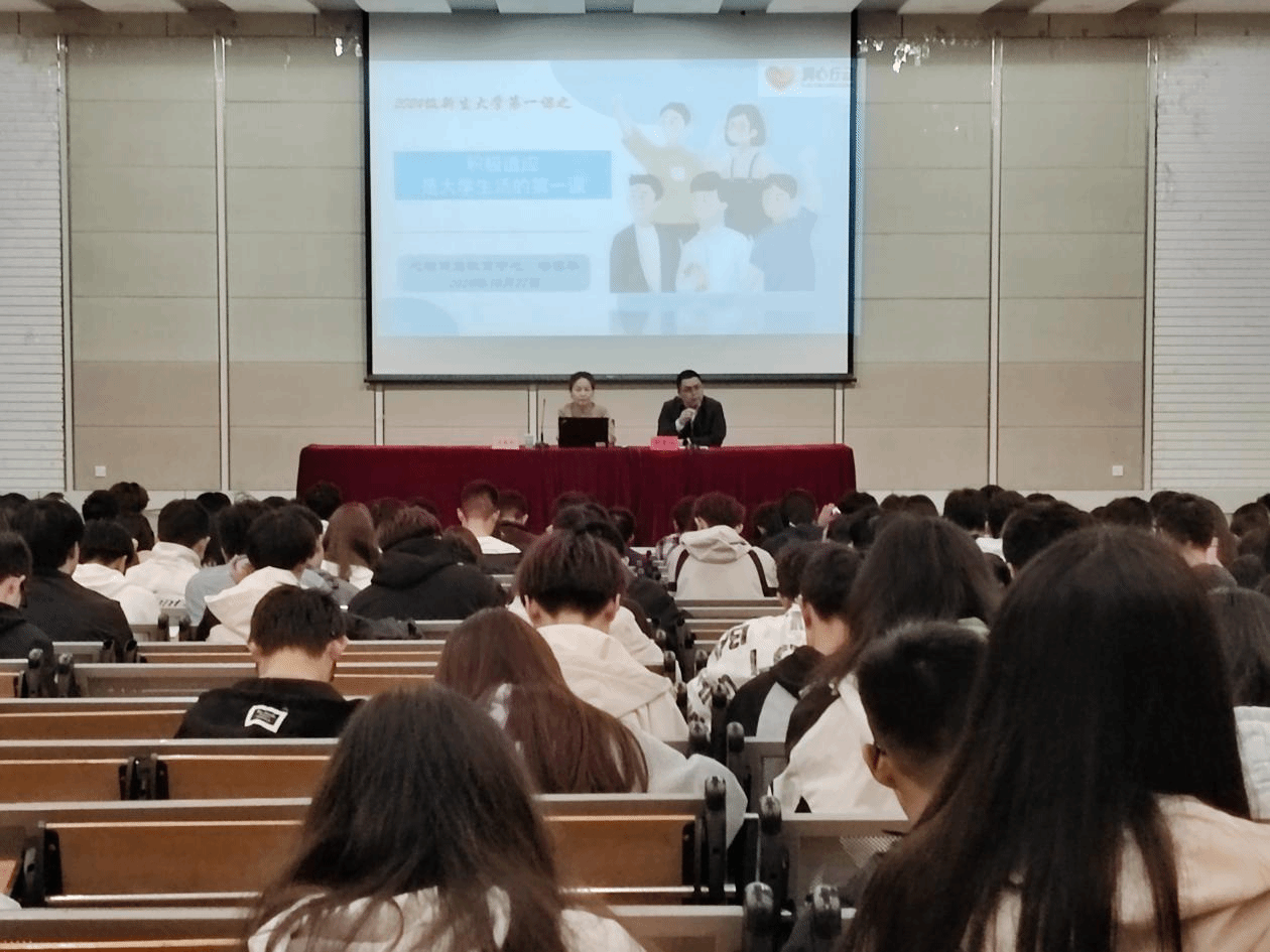 韦春华以《积极适应是大学生活的第一课》为题,重点围绕不适应的主要表现和如何克服不适应两个层面,从“什么是心理健康”切入主题,针对现阶段大一新生容易出现的对大学集体生活不适应、对社会关系变化不适应和对自我变化不适应等问题展开深入分析。她建议,同学们要开放心态,积极拥抱各种丰富多彩的生活方式;要保证学业的完成,始终把学习放在第一位;要保持自己的身心健康,建立积极的生活态度、培养健康的生活方式。