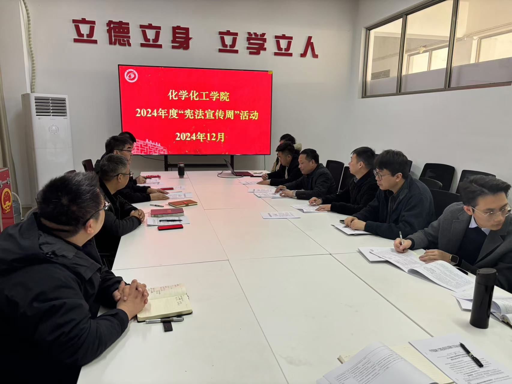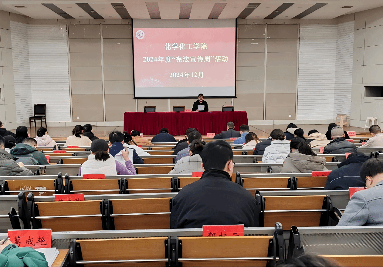 12月4日下午,在化工楼报告厅,学院党委书记庞辉领学了习近平总书记主要著作《论坚持全面依法治国》《习近平法治思想学习纲要》和重要文章《加强党对全面依法治国的领导》中关于宪法的重要论述,他表示习近平法治思想是习近平新时代中国特色社会主义思想的重要组成部分,是新时代推进全面依法治国的根本遵循和行动指南。他强调,要以习近平法治思想为指导,增强宪法意识和法治观念,自觉成为宪法的忠实崇尚者、自觉遵守者和坚定捍卫者。