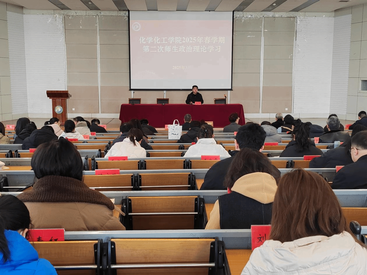 3月19日下午,betway西汉姆联官网在北校区化工楼报告厅组织开展2025年春学期第二次师生政治理论学习。学院党委书记庞辉主持,学院全体教职工、学生党员和学生干部代表参加。