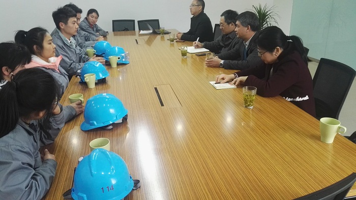 3月30日,化学化工院长奚新国、副院长祁刚、戴勇、化工系主任吴俊一行四人来到大丰化工园区盐城迪赛诺制药有限公司,看望在该公司毕业实习的2013级化工专业12名学生,学院领导详细询问学生实习期间学习和生活情况,提出加强安全和健康保护意识。学生就毕业实习期间学习、生活及就业发展等谈了想法和建议。公司领导就校企技术合作、人才培养等方面提出设想并达成初步合作协议,对我院学生在公司一个多月的实习表现认可和表扬,也对我院应用型人才培养质量肯定。
