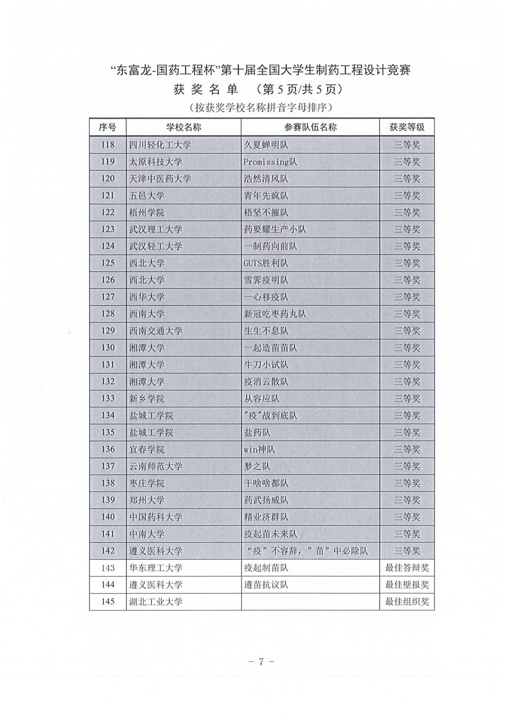 近日,由全国药学类院校大学生专业技术与实验技能竞赛组委会主办、东富龙科技集团股份有限公司与中国医药集团联合工程有限公司协办、湖北工业大学承办的“东富龙-国药工程杯”第十届全国大学生制药工程设计竞赛圆满落幕。本次竞赛以“年产7000万支新冠疫苗制剂车间工艺设计”为题,设计范围为疫苗制剂车间(含辅助生产设施),设计要求除满足药品生产质量管理规范(GMP)外,还需考虑在主工艺段留有参观空间。全国共有138所学校540支队伍报名参赛,其中107所学校228支队伍提交了参赛作品。