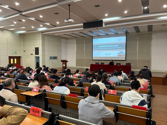 实验中心主任冒爱荣作“实验室隐患排查治理机制建设”专题讲座,他介绍了双重预防机制基础知识,强调了双重预防机制建设背景,全面解读了《betway西汉姆联官网实验室安全自查自纠暂行办法》,系统梳理了常见实验室安全隐患,并就如何改进实验室安全管理工作提出了“五落实”的要求。