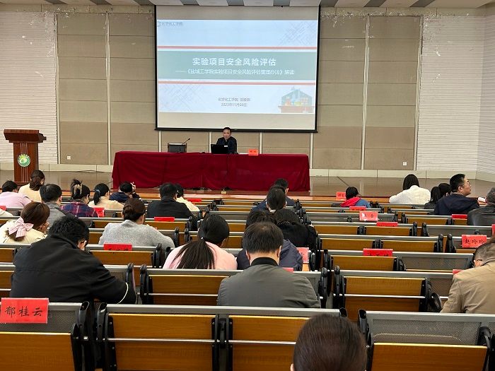 为进一步加强实验项目安全管理,提高实验室安全风险防控能力,提升实验室安全建设和安全管理水平,11月8日下午,betway西汉姆联官网在化工楼报告厅开展实验项目安全风险评估专项培训。学院副院长祁刚主持,全体教师参加。