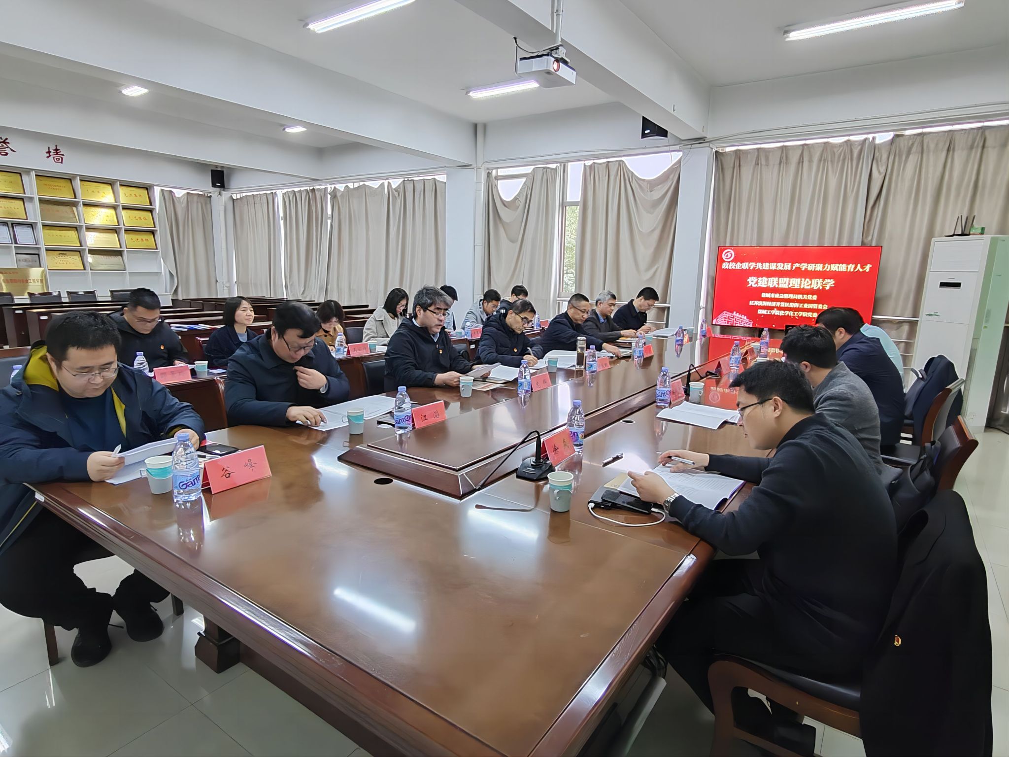 11月22日下午,betway西汉姆联官网党委以“政校企联学共建谋发展 产学研聚力赋能育人才”为主题,在学院201会议室组织开展党建联盟理论联学联建活动。校党委第一巡学旁听组组长谢毅敏、成员王丽坤到会指导,盐城市应急管理局机关党委专职副书记仇伟、法规处处长宋杰、江苏滨海经济开发区沿海工业园管委会副主任潘成杰、安委办主任徐焱参加活动并作重点发言。学院党委书记庞辉主持会议,学院党委理论中心组全体成员参加。